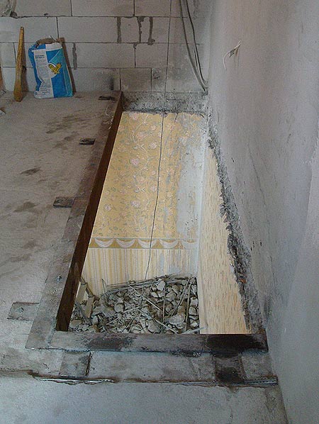 Частичный демонтаж плиты перекрытия. Швеллер заводится под стены.